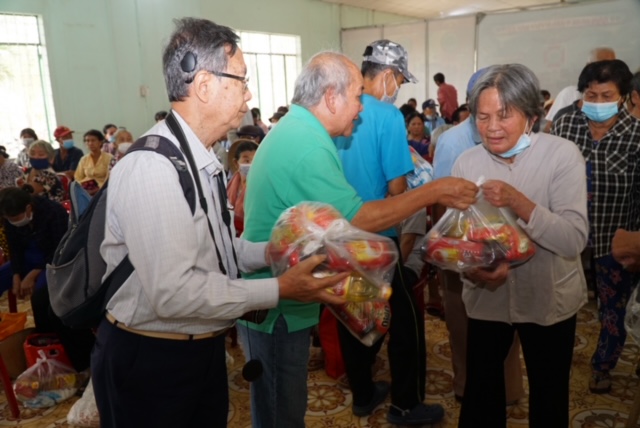 Sau phần nghi thức là phần trao quà cho các trại viên, với sự tổ chức chu đáo, cẩn thận của Ban lãnh đạo trại việc phát quà được tiến hành trong sự trật tự và đầy đủ, các thầy cô dù lớn tuổi như thầy Diễm, cô Thoa vẫn chung tay hỗ trợ việc trao quà cho từng trại viên cùng với các bạn đồng môn trong không khí vui vẻ tràn đầy tình cảm ân cần. Buổi phát quà cũng xong, các trại viên trở về khu phục hồi phía cuối đường trong khuôn viên trại, trả lại hội trường không gian vắng lặng như mọi khi.