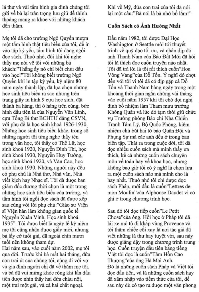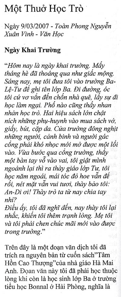 Một thuở học trò Toàn Phong Nguyễn Xuân Vinh (Nguồn: Đặc san “Tạ Ơn Thầy, Nhớ Ơn Cô” – Học trò Petrus Ký) Share this: Share on X (Opens in new window) X Share on Facebook (Opens in new window) Facebook Like Loading...
