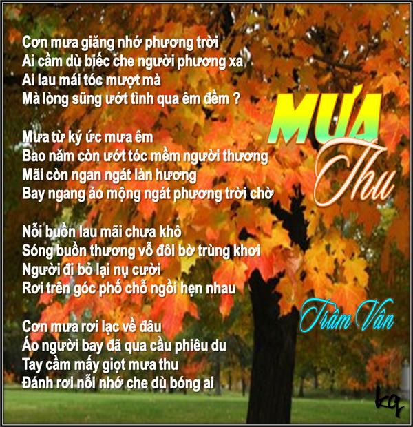 Mưa Thu Trầm Vân Share this: Share on X (Opens in new window) X Share on Facebook (Opens in new window) Facebook Like Loading...