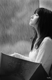 Tôi đứng một mình trong cơn mưa đã nhẹ hạt, đủ làm ướt tóc và mặt. Tôi đứng lặng người, nước mắt của tôi và của bầu trời không ánh sáng hoà lẫn vào nhau.