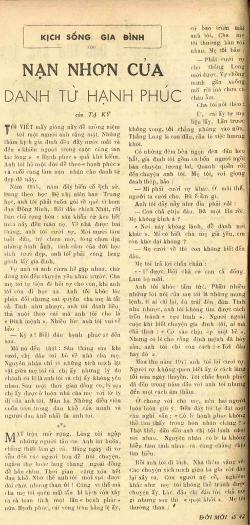 Nạn nhơn của danh từ hạnh phúc Tạ Ký (nguồn: tuần báo Đời Mới số 42, ngày 24-1-1953) Võ Phi Hùng sưu tập Screenshot Screenshot Share this: Share on X (Opens in new window) X Share on Facebook (Opens in new window) Facebook Like Loading...