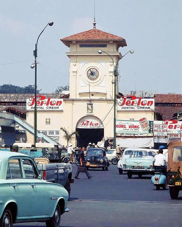 Nhiều bảng quảng cáo đã được gắn ở chợ Bến Thành từ trước năm 1975 – Ảnh tư liệu