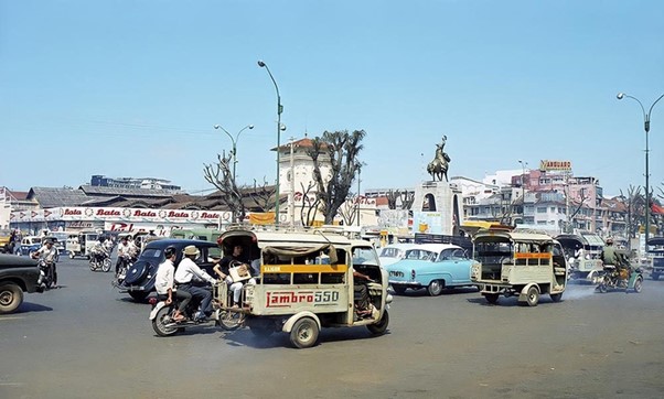 Cảnh người xe tấp nập ở chợ Bến Thành trước năm 1975 – Ảnh tư liệu