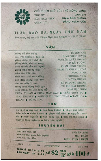 (2) Tôn Nữ Thu Dung – tên nhà thơ, nhà văn nữ cây bút trẻ trước 75 là một trong những cộng tác viên của Tuần báo Tuổi Ngọc.