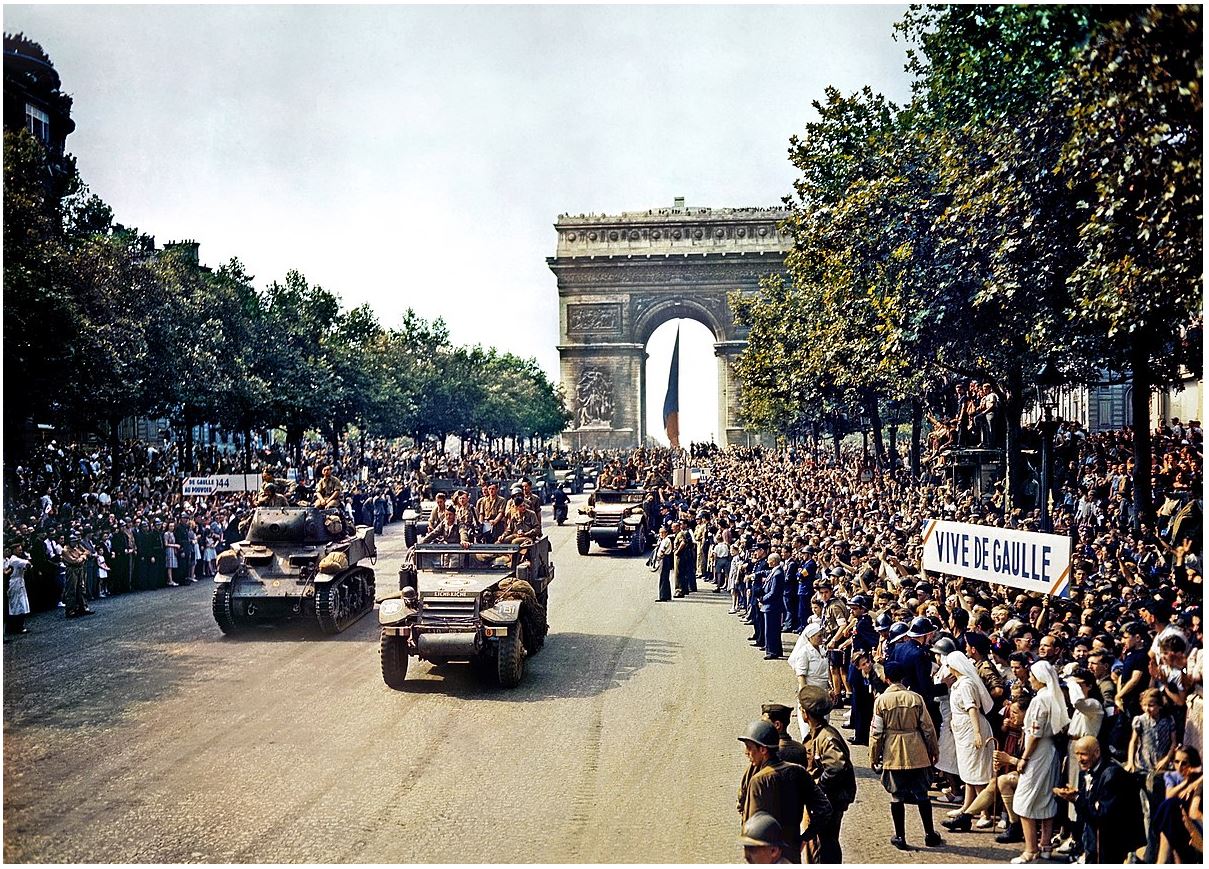 Hàng năm bên Pháp có tổ chức lễ kỷ niệm lịch sử về cuộc đổ bộ củaquân đội Đồng Minh mà Mỹ là nhân vật chính (không có Mỹ là không xong !) lên bờ biển vùng Normandy (Normandie) ngày 6/6/1944 trên 5 bãi đổ quân là Juno (quân Canada), Gold (quân Anh), Sword (Anh và Pháp), Utah (quân Anh và Mỹ), Omaha (quân Mỹ đảm nhiệm được xem là chiến sự đổ máu nhất). Khoảng cách từ Paris đến chỗ đổ bộ trung bình là 320 km (bằng đường từ Dallas xuống Austin, Texas hay Sàigòn lên Đà Lạt).