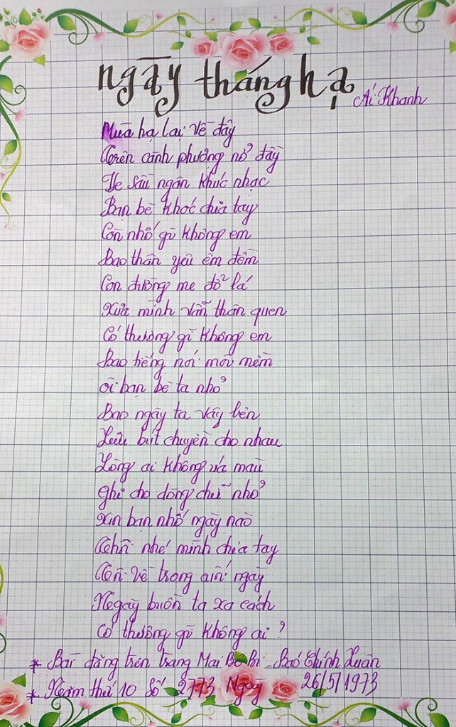 Bài thơ gốc “Ngày tháng hạ” đăng trên trang Mai Bê Bi