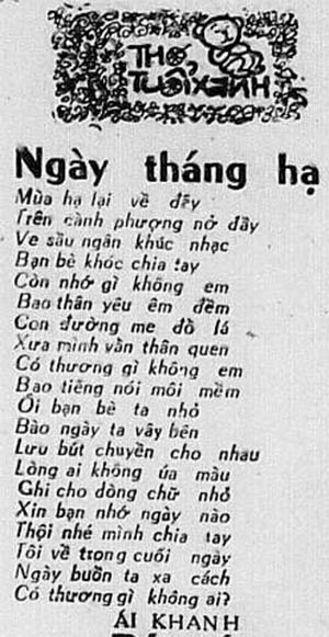 Bài thơ gốc “Ngày tháng hạ” đăng trên trang Mai Bê Bi