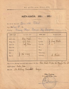 • Lớp Đệ Lục F (niên khóa 1954-1955): Thầy Khôi dạy bọn tôi cả 3 môn Toán, Lý-Hóa, và Vạn Vật