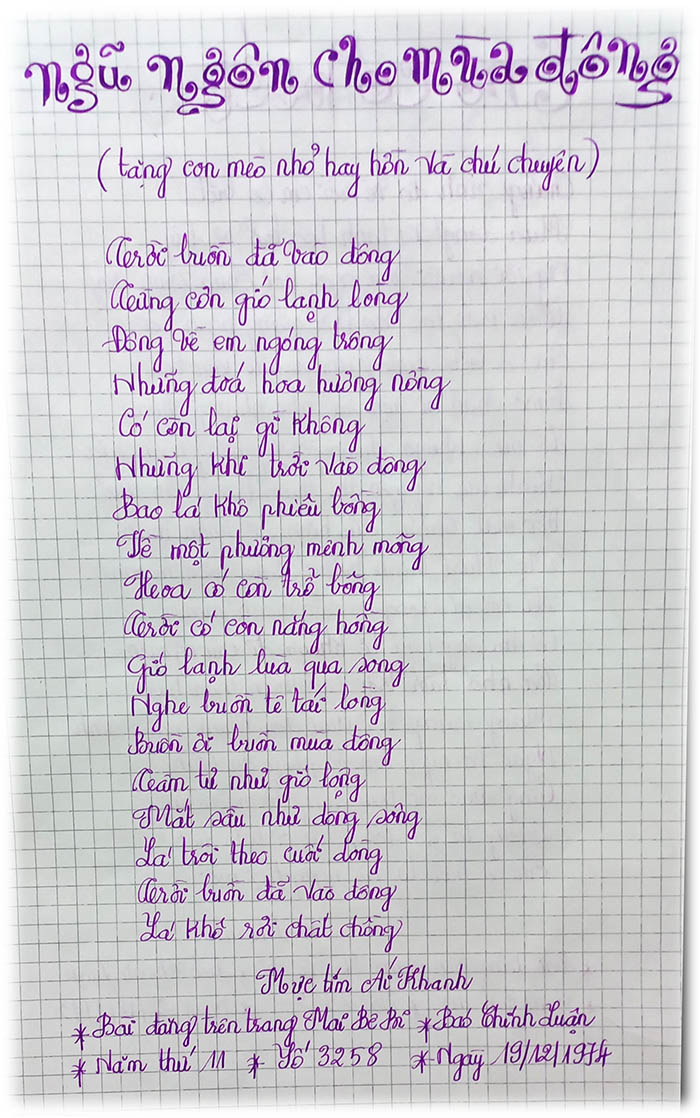 Bài đăng trên trang Mai Bê Bi * Báo Chính Luận