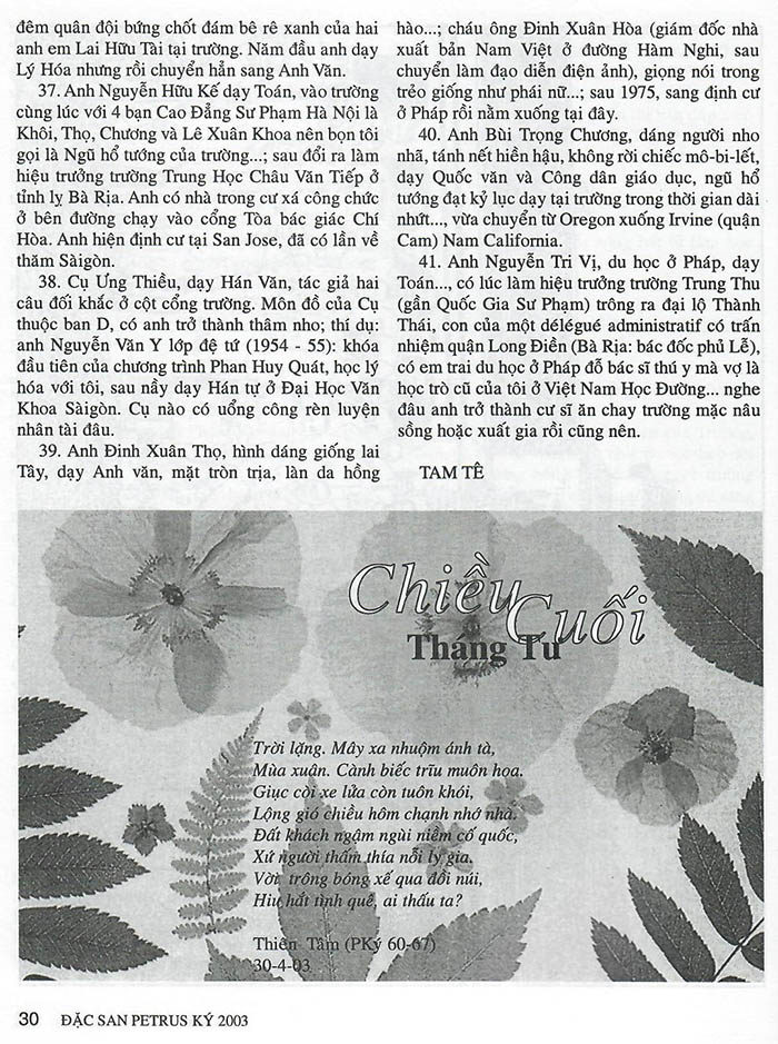 Người nay đâu tá Tam Tê (GS Trần Thượng Thủ) (Nguồn: ĐS Petrus Ky 2003, Hội AH CHS Petrus Ký Bắc California) Share this: Click to share on X (Opens in new window) X Click to share on Facebook (Opens in new window) Facebook Like Loading...