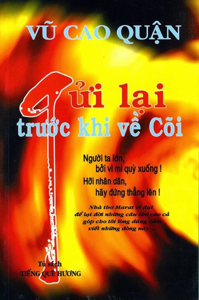 Gửi Lại Trước Khi Về Cõi của Vũ Cao Quận gợi nhắc nhiều sự việc, nhiều tâm tư, nhưng gợi nhắc chân thành và khẩn thiết nhất có lẽ chỉ gom trong 2 câu thơ ngắn của Marat: