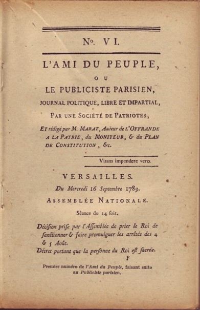 – Jean-Paul Marat, L’Ami du peuple. The Project for American and French Research on the Treasury of the French Language (ARTFL). University of Chicago & New York Public Library.