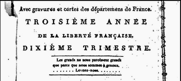 Đây là tài liệu đã số hóa duy nhất mà người viết tìm được gốc chính của câu văn “Les grands ne nous paroissent grands que parce que nous sommes à genoux. Levons nous” đăng từ số đầu tiên của tờ Les Révolutions de Paris và là châm ngôn biểu tượng của tờ báo trong suốt thời gian xuất bản từ 12 tháng Bẩy 1789 đến 28 tháng Hai 1794.