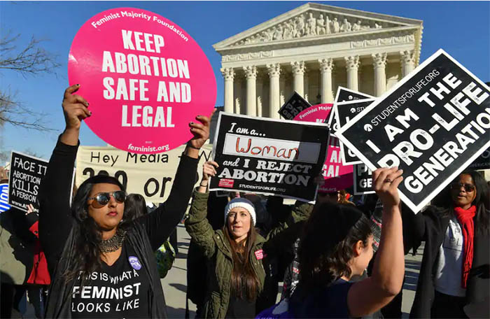 Những người ủng hộ quyền phá thai và những người chống phá thai biểu tình bên ngoài Tối cao Pháp viện Hoa Kỳ vào tháng 1 năm 2018. (Ricky Carioti / The Washington Post)