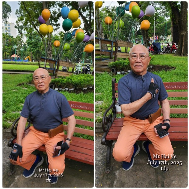 Tuy, tuổi đời đã ngoài tám mươi, nhưng ông vẫn còn tiếp tục cầm kéo để vui với tuổi già và làm đẹp cho thiên hạ. Sáng sớm, ông thường ra Công Viên, mà ngày xưa là Nghĩa Trang Mạc Đĩnh Chi, nằm trên bốn con đường: Đường Hai Bà Trưng, Phan Thanh Giản, Hiền Vương và Phan Liêm. để đi bộ, tập thể dục, tài chi, đánh vũ cầu, nói chuyện đời xửa, đời xưa … Sau đó tạt qua tiệm cơm tấm số 114 Hiền Vương ở gần đó kêu một dĩa cơm tấm bì, hột gà ốp la, sườn nướng và kèm thêm một ly cà phê sữa đá, coi như hết buổi sáng.