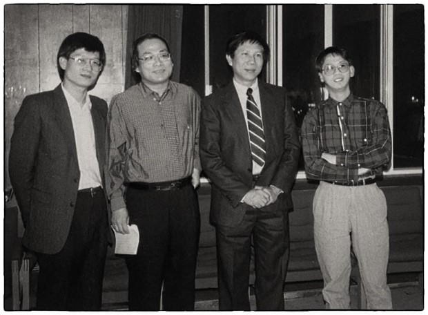 (Thầy Nguyễn Xuân Hoàng với 3 cựu học sinh Petrus Trương Vĩnh Ký, Montréal, Canada 9-1989)