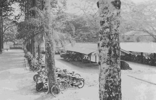 Trong thập niên 1950 của thế kỷ trước, tuyệt đại đa số học sinh Petrus Ký đều đi học bằng xe đạp. Nhà trường đã dành ra một khu đất khá rộng, nằm bên phía tay trái của con đường trải đá ong từ ngoài cổng vào. Lâu quá rồi nên tôi không còn nhớ rõ là có tất cả bao nhiêu nhà giữ xe đó, nhưng ít nhứt cũng phải trên dưới hai chục cái, tất cả đều giống hệt nhau, thiết kế như sau:
