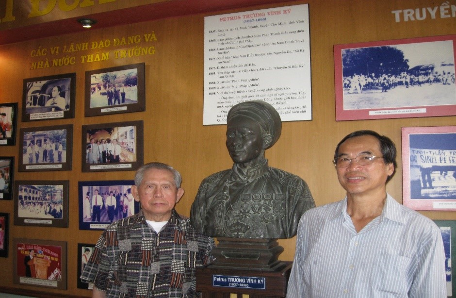 Tượng Petrus Ký trong Phòng Truyền Thống – Tác giả và Ông Võ Anh Dũng, cựu học sinh Petrus Ký (1966-1972) và cựu Hiệu Trưởng Trường Phổ Thông Chuyên Lê Hồng Phong (2005-2014)