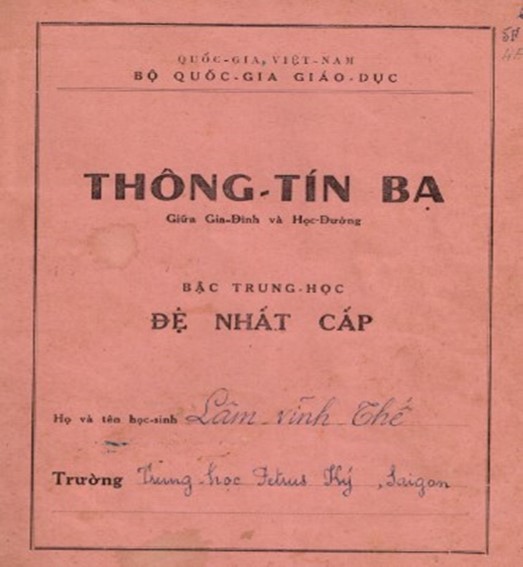 Bìa Trước của Thông Tín Bạ Đệ Nhứt Cấp