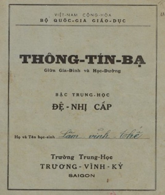 Bìa Trước của Thông Tín Bạ Đệ Nhị Cấp