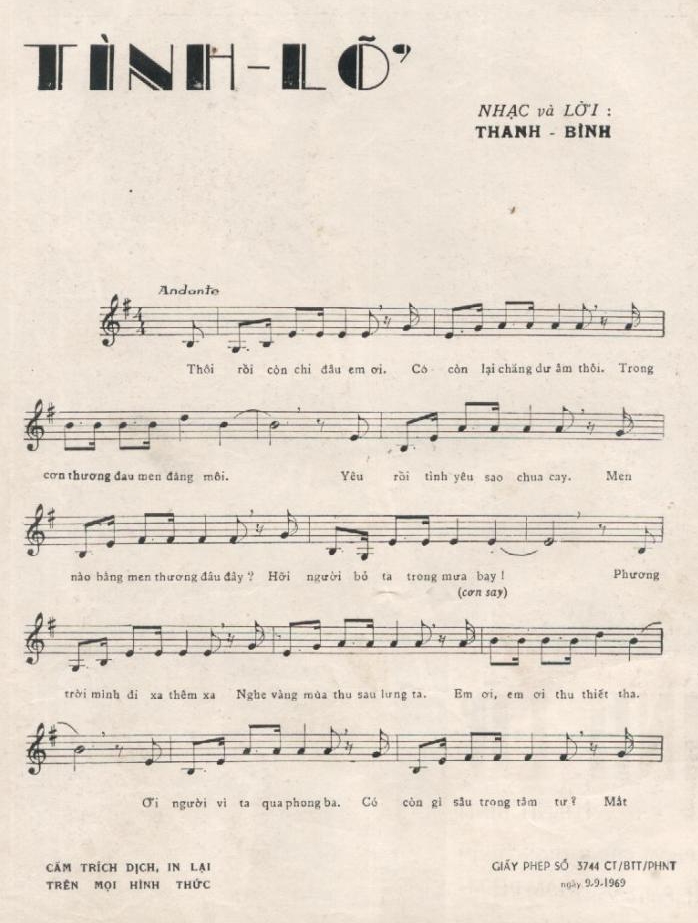 Dư âm của cuộc tình dang dở đó theo chân ông rời đất Bắc và dong ruổi trên bước đường di cư xuống phương Nam. Không lâu sau đó, nhạc phẩm “Tình lỡ” với lời lẽ xót xa, nức nở ra đời như để nhắc nhở và tiếc nuối cho một cuộc tình đã xa mờ theo dĩ vãng ..