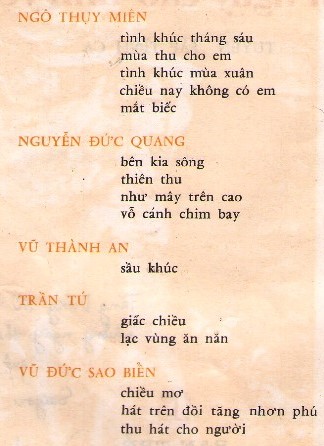 Tập nhạc “Một ngày cho tình yêu” giới thiệu những nhạc phẩm mới mẻ của các nhạc sĩ trẻ tuổi như Trần Tú, Nguyễn Đức Quang, Vũ Thành An, Ngô Thụy Miên và Vũ Đức Sao Biển được nhà xuất bản Khai Hóa ấn hành năm 1971 và được tái bản sau đó bởi nhà xuất bản Bạn Trẻ.