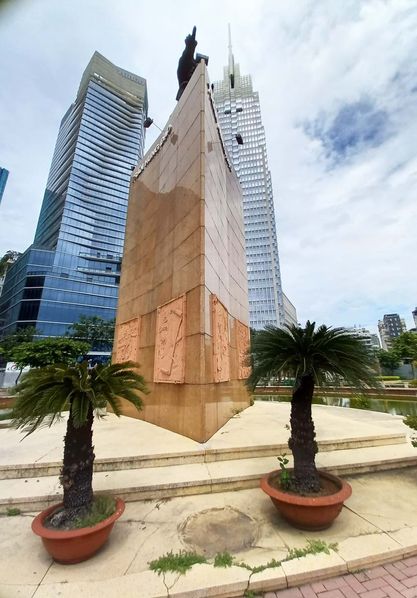 Toàn cảnh hồ bán nguyệt và tượng đài Trần Hưng Đạo được thiết kế hoàn hảo, tạo nên một dấu ấn đẹp dọc bờ sông Sài Gòn. Ảnh chụp lúc 10h sáng 14.9.2021
