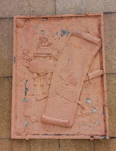 Đặc biệt nhất, có một tấm phù điêu khắc họa đơn giản hình ảnh một đỉnh đốt trầm và một cây gươm, đi cùng một cuộn văn bản xưa đang tung mở. Chỉ vậy thôi, không cần ghi lời mà người xem có thể liên tưởng ngay đến Hịch Tướng Sĩ, một áng hùng văn đã đi vào tâm khảm của dân tộc. Này đây, nỗi thao thức của một hào kiệt trước vận mệnh đất nước: