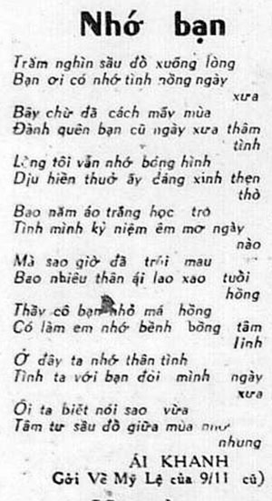 (Gởi về Mỹ Lệ của 9/11 cũ)
