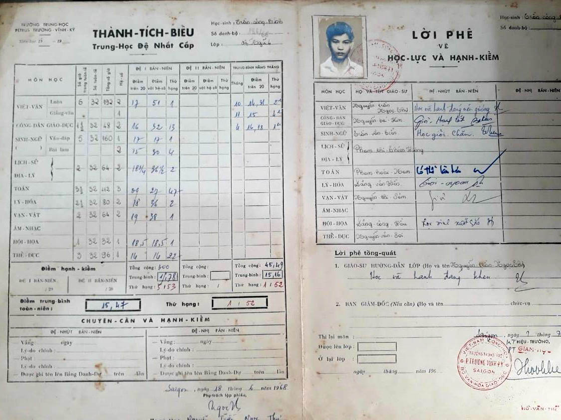Giở lại trang thành tích biểu, tôi giật mình hơi có chút ngạc nhiên khi thấy môn Sử Địa lại là hệ số 2 , ngang hàng với môn Lý-Hóa, Vạn Vật, chỉ sau môn Toán hệ số 3 mà thôi. Như vậy, trong nền giáo dục VNCH, Sử Địa là môn học quan trọng hơn cả hội họa, thể dục, giảng văn (chỉ hệ số 1). Còn đối với tôi, tự thuở nhỏ, ba tôi đã dạy rằng học Sử Địa là để nhằm yêu nước, thầy Sử Địa hơn ai hết là người gợi mở tình tự dân tộc cho học sinh.