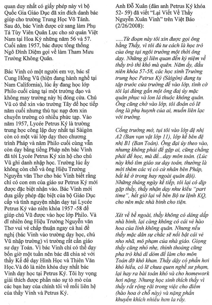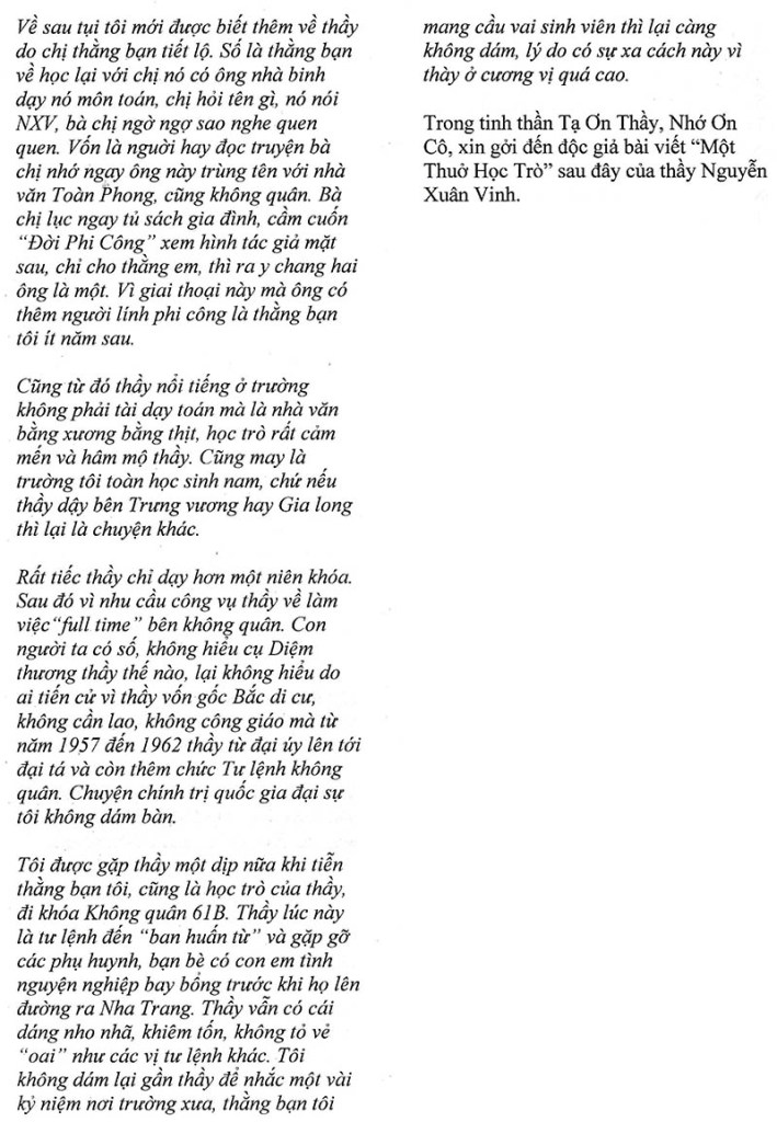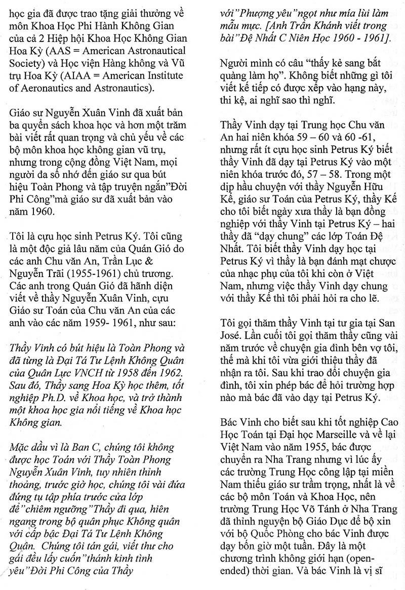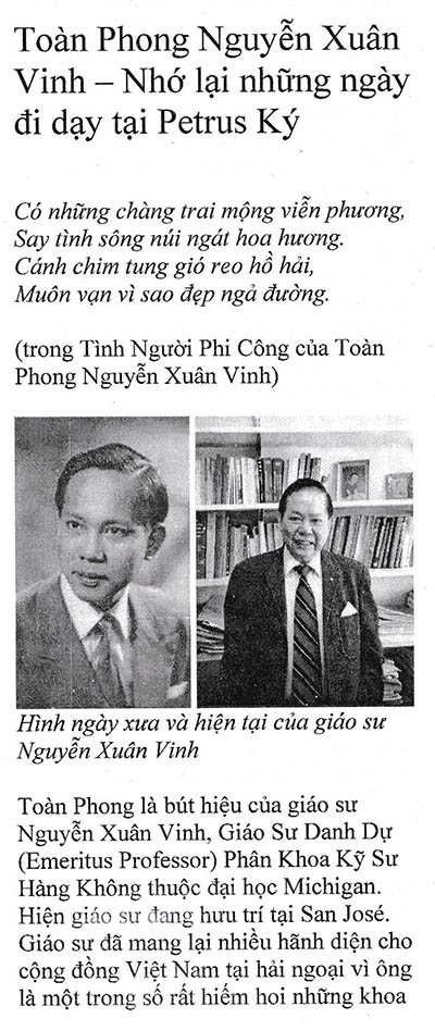 Nhớ lại những ngày đi dạy tại Petrus Ký Toàn Phong Nguyễn Xuân Vinh (Nguồn: Đặc san “Tạ Ơn Thầy, Nhớ Ơn Cô” – Học trò Petrus Ký) Share this: Share on X (Opens in new window) X Share on Facebook (Opens in new window) Facebook Like Loading...