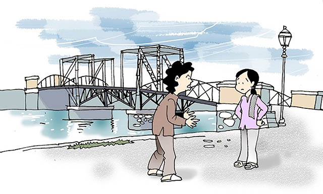Thuở mới “dê” em, tui đã thề thốt lung tung là: “Chừng nào cầu Quay nọ thôi quay. Thì qua với bậu mới dứt dây cang thường”. Ðạo cang thường thường dùng để chỉ tình cảm vợ chồng. Vì hồi xưa thay thế bến đò Ðiều Hòa nối hai bờ kinh Bảo Ðịnh, vào năm 1890, Tây cất cầu sắt tên là Cầu Quay Mỹ Tho là một kiến trúc Eiffel. Năm 1938, Cầu Quay sập, Tây xây lại cầu đúc. Cái dạ cầu nó cao lên; tàu đò qua lại phẻ re nên không cần quay nữa. Bây giờ cầu hết quay rồi; “dê” em mà muốn em tin thì phải kiếm cái khác mà thề. Thề dưới sông sợ ma da, Hà bá nó kéo giò thì leo lên đường rầy xe lửa mà thề như ông Bình Nguyên Lộc trong truyện ngắn: “Xe lửa Mỹ bung vành”.