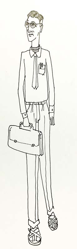 Châu gầy và cao, hơi lỏng khỏng. Đầu chải bảy ba, chắc có bri-ăng tin nên luôn bóng mướt.