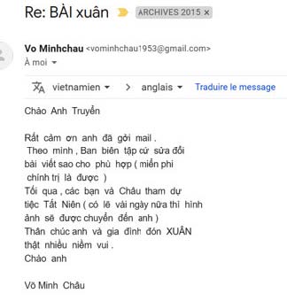 14/02/2019 Chia sẻ với các bạn bức thư của Châu về bài báo Xuân bạn viết năm 2017.