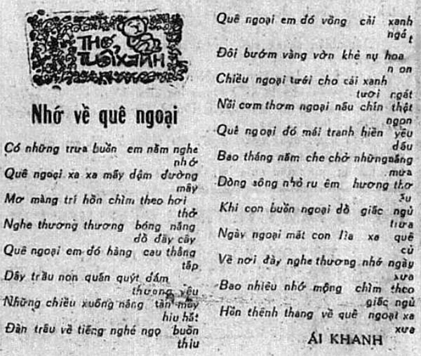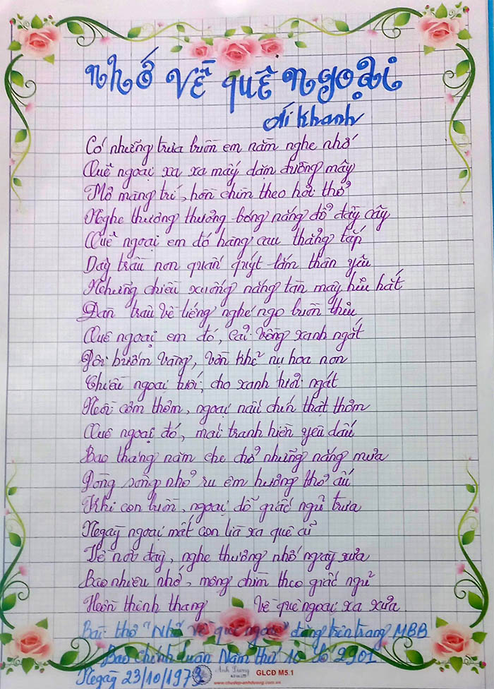 Bài thơ gốc Nhớ về quê ngoại đăng trên trang Mai Bê Bi
