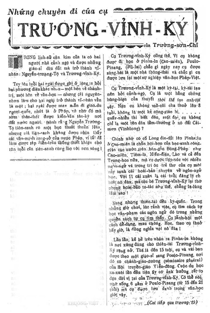 Những chuyến đi của cụ Trương Vĩnh Ký