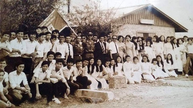 Hình 17. Vào dịp Tết Giáp Dần 1974 để hưởng ứng “Cây mùa Xuân chiến sĩ”, học sinh P. Trương Vĩnh Ký dưới sự hướng dẫn của thầy Tổng giám thị Trần Quang Nhàn đã đến viếng thăm các chiến sĩ sư đoàn 5 Bộ binh, đơn vị kết nghĩa với trường tại Phú Giáo, Bình Dương.