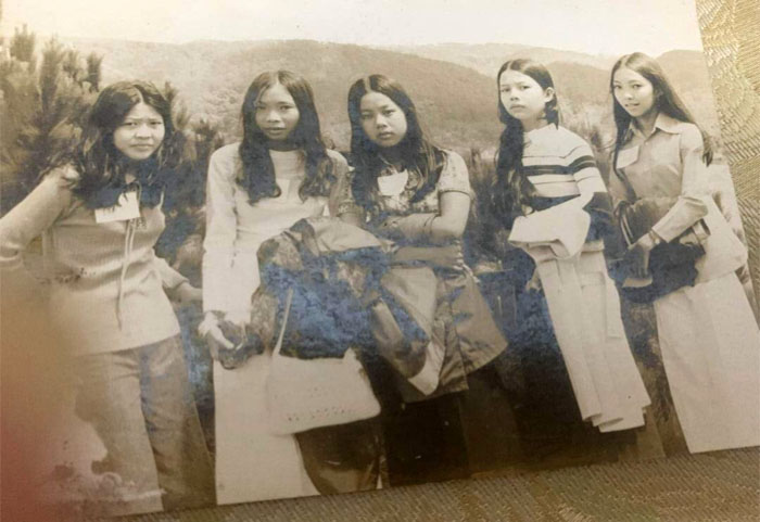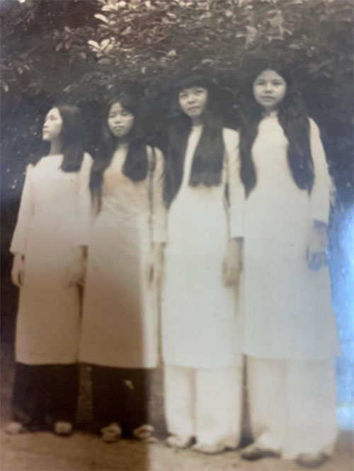 Bạn Bùi Phương Mai (đã mất năm 2016), Nguyễn thị Kim Nên, Phạm thị Hạnh và Phú thị Huyền Nga (từ trái sang phải), chụp tại nhà bạn Vũ thị Thiên Chân.