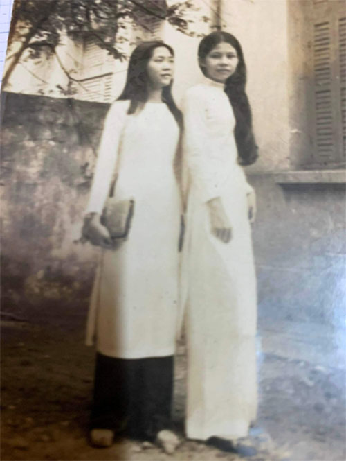 Không hình ảnh nào đẹp hơn với hai cô học trò trong chiếc áo dài trắng tinh khôi, với mái tóc thề chấm lưng của hai bạn Phạm thị Hạnh (bên trái) và Phú thị Huyền Nga.