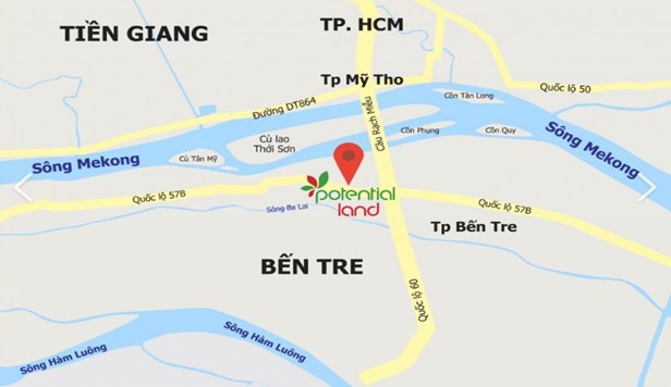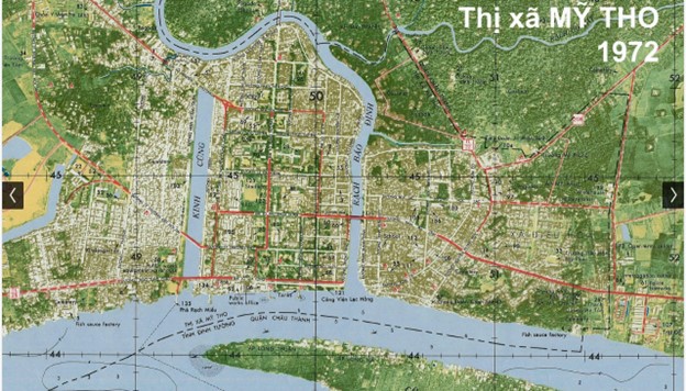 Bản đồ các cồn trên Sông Tiền giữa Mỹ Tho và Bến Tre