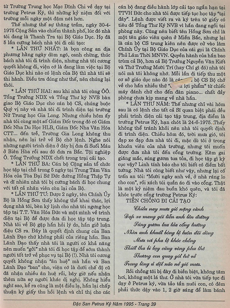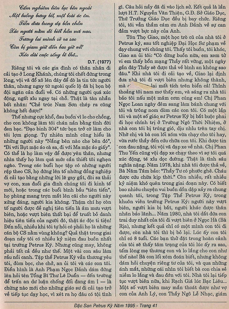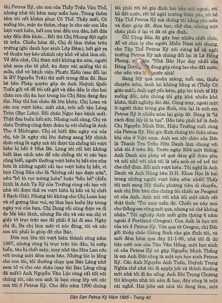 Những kỷ niệm vui buồn với trường Petrus Ký Diệu Hải (Nguồn: Đặc san Petrus Ký Nam Cali năm 1995) Share this: Click to share on X (Opens in new window) X Click to share on Facebook (Opens in new window) Facebook Like Loading...