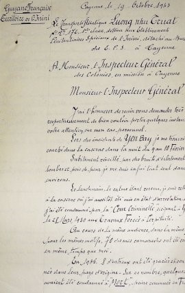 Thỉnh nguyện thư của Lương Như Truật xin ân xá (9 tháng 10, 1943). Nguồn: Thư khố Guiana