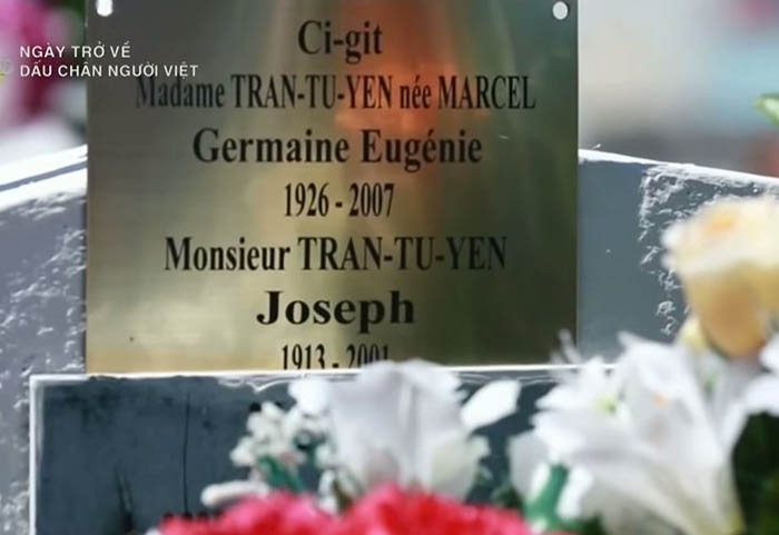 Bia mộ của vợ chồng ông Joseph Trần Tử Yến và bà Marcel Germaine Eugénie tạy nghĩa trang ở Cayenne, Guiana. Ảnh: chụp màn hình phim Ngày trở về – Dấu chân gười Việt (VTV1) 2016.