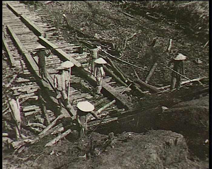 Tù nhân việt nam đang làm việc ở Innini. Ảnh trong phim “Au temps de l’Inini” (Vào thời của Inini) do Geneviève Wiels thực hiện (2001).