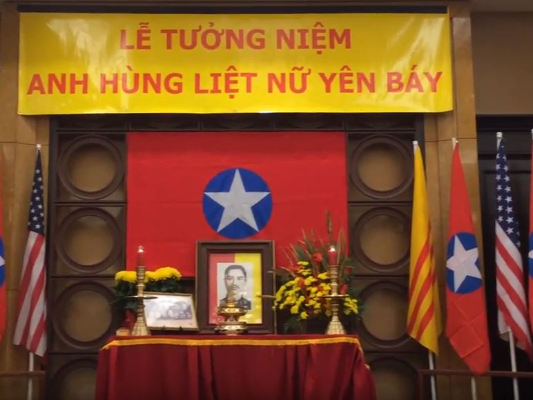 Một tấm ảnh khác chụp trong một buổi “Lễ Tưởng niệm Liệt sĩ Yên Báy” (14/6/2015 Sheraton hotel, Anaheim), dưới đảng kỳ, trên bàn thờ là ảnh của cựu Đảng trưởng Nguyễn Thái Học, và bên cạnh là tấm ảnh 13 thủ cấp lộng khung vàng.