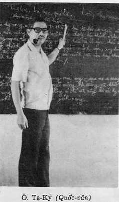 Trong tất cả những người thầy cô đã dạy tôi ở Petrus Ký thì có lẽ thầy Tạ Ký là ông thầy ngầu nhất, cứ tưởng tượng một ông thầy với một dáng điệu lang bạt, phong trần, miệng ngậm ống pipe, đôi khi phì phèo hít vài hơi rồi nhả khói ra, mắt nhìn học trò hơi nheo lại sau cặp kiếng cận, nghiêm khắc nhưng cũng có vẻ giễu cợt. Khi giảng bài, giọng thầy Tạ Ký không san sảng mà hơi khàn khàn, nhừa nhựa nhưng khi thầy giảng về thơ thì cả lớp bị thôi miên vì cái say mê toát ra từ lời giảng, từ con người thầy.