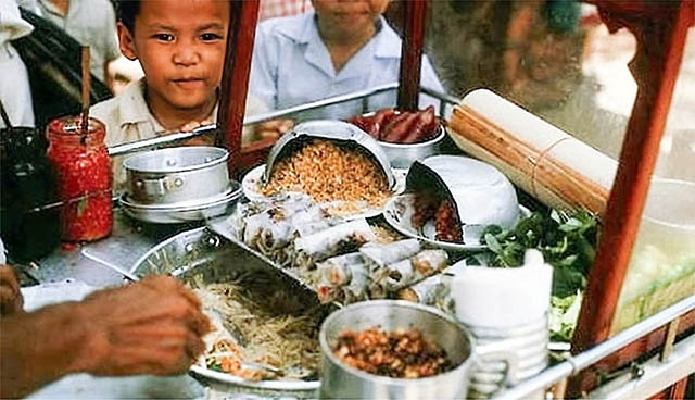 “Anh ơi, nước mía Viễn Đông. Hai ly chưa đã, mát lòng em luôn. Thêm dĩa bò bía chấm tương. Xực thêm phá lấu, em thương anh nhiều.”
