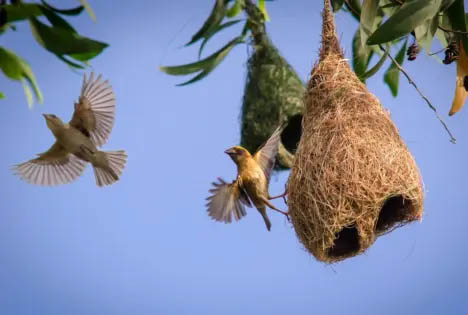 Nếu nói về con người: “ Đàn ông xây nhà…”, thì với chim dồng dộc, tổ chim được làm rất nghệ thuật, công phu và cả chăm chỉ đều do một mình chim trống làm. Tổ được dệt bằng những cọng cỏ, lá dừa, lá lúa hoặc lá mía, và theo các nhà sinh vật học thì: Tổ của chim dồng dộc vàng có lối vào phía bên hông không có đường hình ống, của dồng dộc đen vào tổ phải qua một đường ống ngắn v.v… Khi làm tổ, chim trống bám trên tổ nó đang làm, hót to và múa để quyến rũ chim mái. Một khi chim mái ưng thuận thì chim trống mới hoàn thiện cái tổ để chim mái đẻ…Nhìn cái tổ của chim dồng dộc được đan kết mỹ thuật và công phu, phất phơ ở những cành cây, miệng tổ trút ngược xuống, vậy mà khi có mưa to, gió lớn, vẫn không có một quả trứng hay một chú chim non nào bị… hất lọt ra ngoài mà khâm phục sự khéo léo của dồng dộc.
