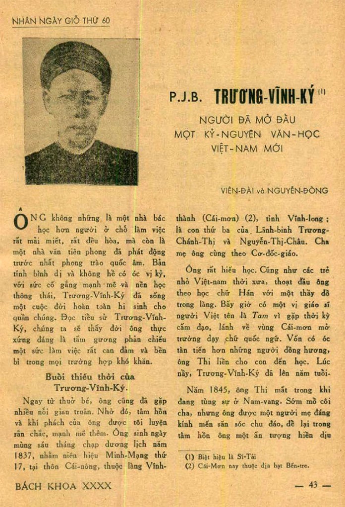 P.J.B. Trương Vĩnh Ký – Người đã mở đầu một kỷ nguyên Văn học Việt Nam mới