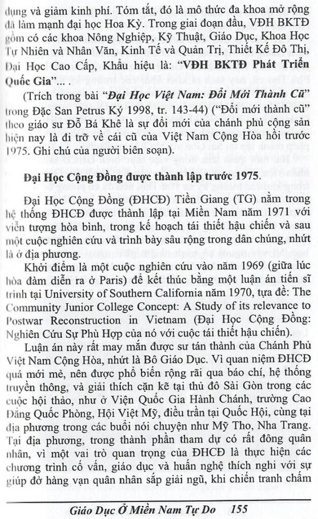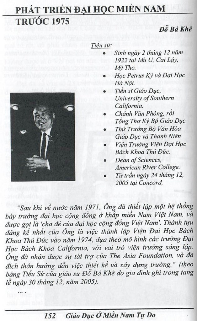 Phát Triễn Đại Học Miền Nam Trước 1975 GS Đỗ Bá khê (Nguồn: “Giáo Dục ở miền Nam Tự do trước 1975” do GS Nguyễn Thanh Liêm làm chủ biên) Share this: Share on X (Opens in new window) X Share on Facebook (Opens in new window) Facebook Like Loading...
